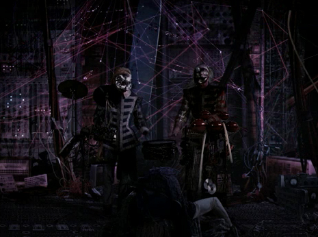 This music video turned out to be a unique family effort, rewarding in the end. A couple of the island shots feature the pop celeb's face rendered by our custom after effects plugin, Pixel F. Meanwhile indoors, Gabriel takes a simple springy spider web I had set up and activates it artistically using pointer bugs and interpolation error. The JChain addiction is born. Special l33t props go out to Gabe as well for his MEL fish fin wave behavior!
