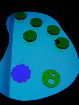 Froggies is a play-testing prototype for a children's digital play environment. A table with a screen embedded into the surface acts as an arena for virtual life. Children react with the virtual life by placing various symbolic markers on the table and sliding them around. The result is a musical rythm of animal noises.