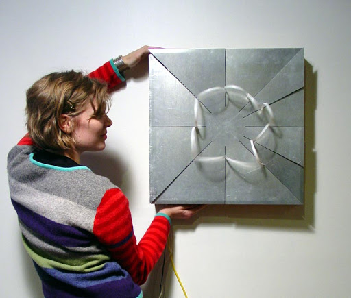 You type a character to this single-letter sign with a mobile device, AIM, or the web, and it responds by forming the approximate typographic shape through contorting a thin white ribbon. In the following video, the cover has been removed from the installation, exposing the insides for fun.