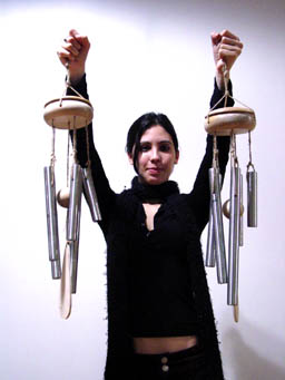 Two wind chimes that robotically induce their own chimes when the other senses presence. Ideally, each chime is placed in the personal environments of participants in long distance romantic relationships. This chime system is an attempt to establish an ambient, passive communication between humans in different places - in response to the fact that all existing communications technology require "push" communication, in which one chooses and intends to communicate rather than giving off a communication.
