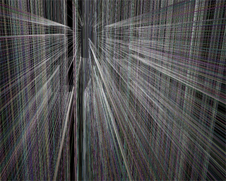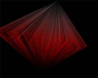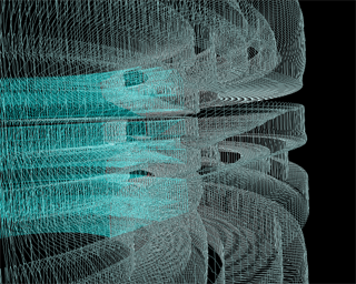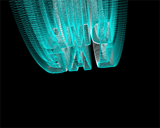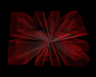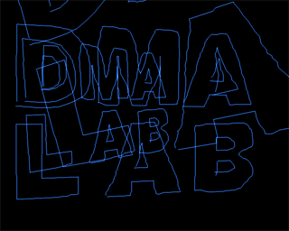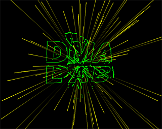 Screen Installation for the grand opening of DMALabs (Sept 24, 2001), running on 4 screens in a curved display case built by John Ruppel. Six visual interpretations of the logo spin about the screen, alternating every few minutes.