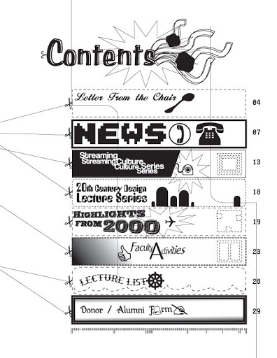 UCLA Design | Media Arts annual newsletter 2001, based on the aesthetic of junk coupon mailer packages.