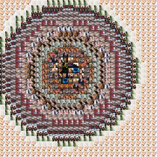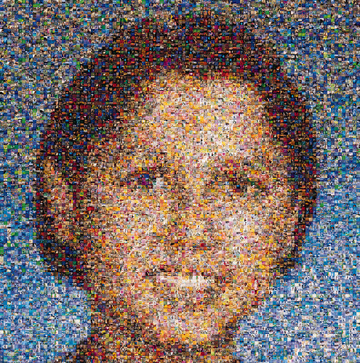 Several pieces produced with tools I programmed, which deal with the (now cliched) concept of smaller images as pixels. Image collections were mostly taken from stock-photo CDs. Others from whatever was sitting on my hard drive. I did not consider them from an artistically meaningful perspective; I did it more just to see if I could. These pieces pre-date the wide distribution of free software which does this automatically for people. At the time, I was required to write the software.