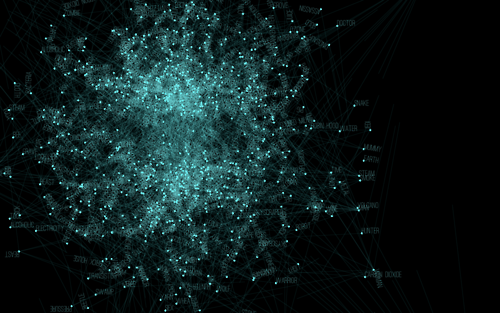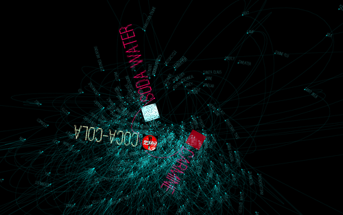 For Art Hack Day, I produced a moving sculpture that highlights a node and moves the network around it to give the audience glimpses of a single idea, and its neighbors.